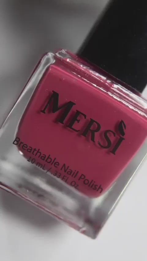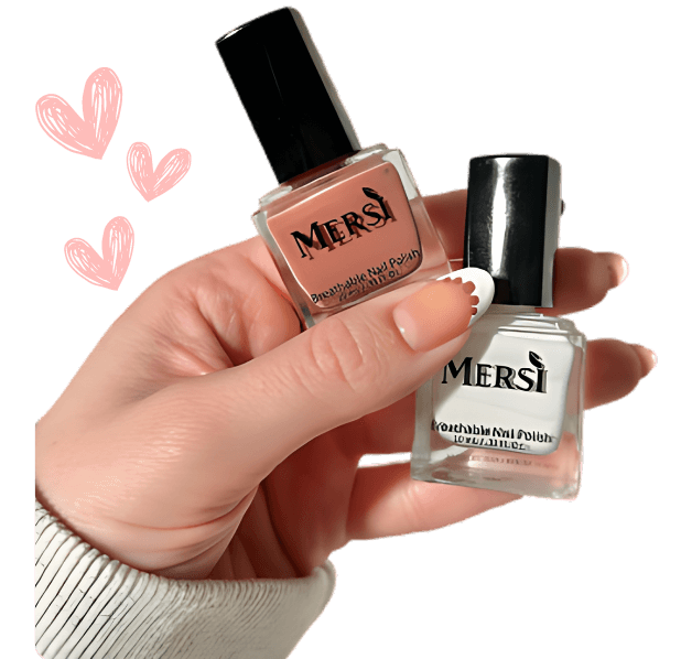 Unlike traditional nail polish, Mersi's formula is non-toxic, vegan, and water-permeable, promoting nail health and ethical beauty.