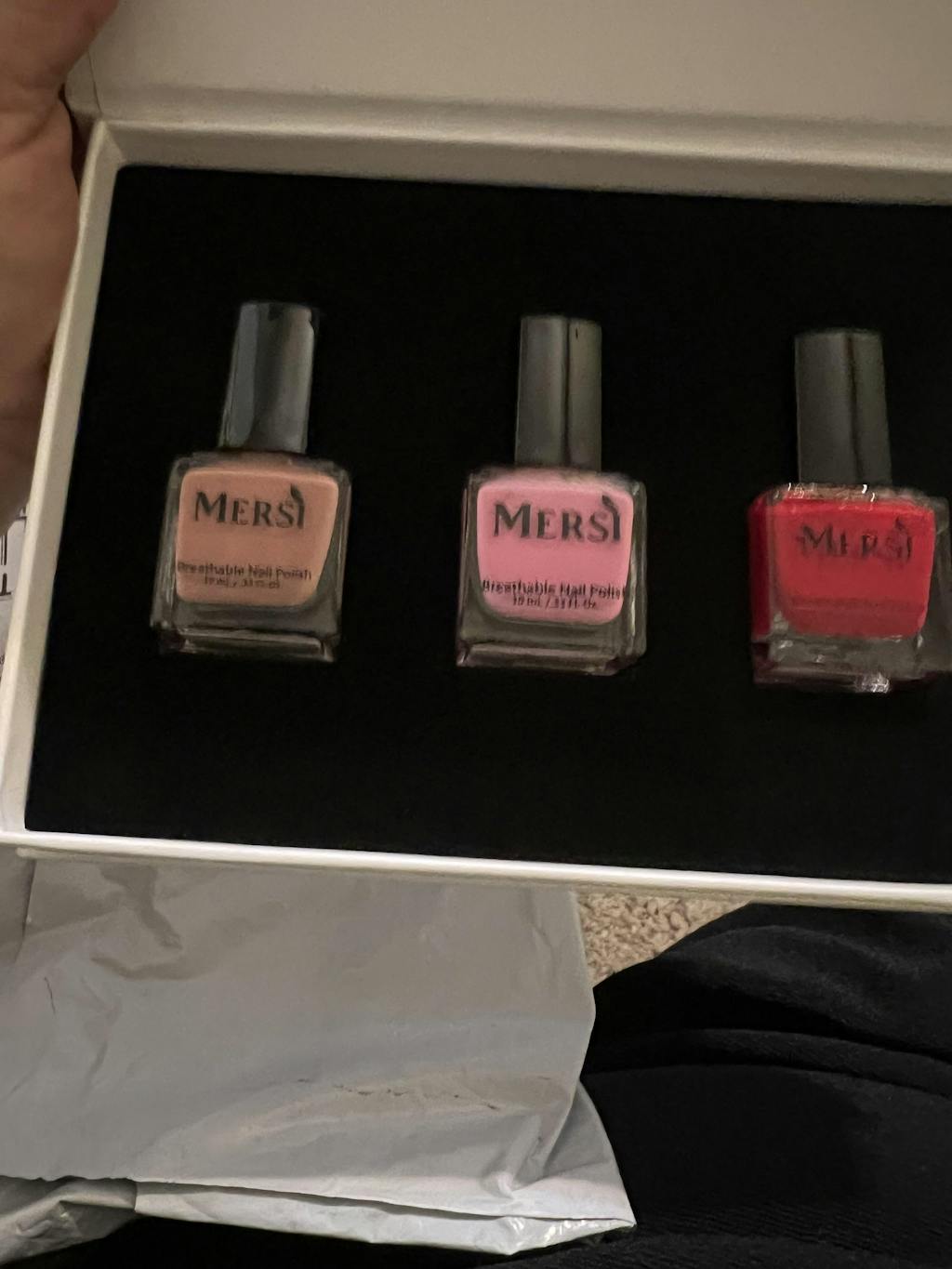 Unlike traditional nail polish, Mersi's formula is non-toxic, vegan, and water-permeable, promoting nail health and ethical beauty.