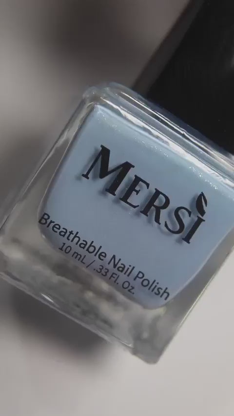 Unlike traditional nail polish, Mersi's formula is non-toxic, vegan, and water-permeable, promoting nail health and ethical beauty.